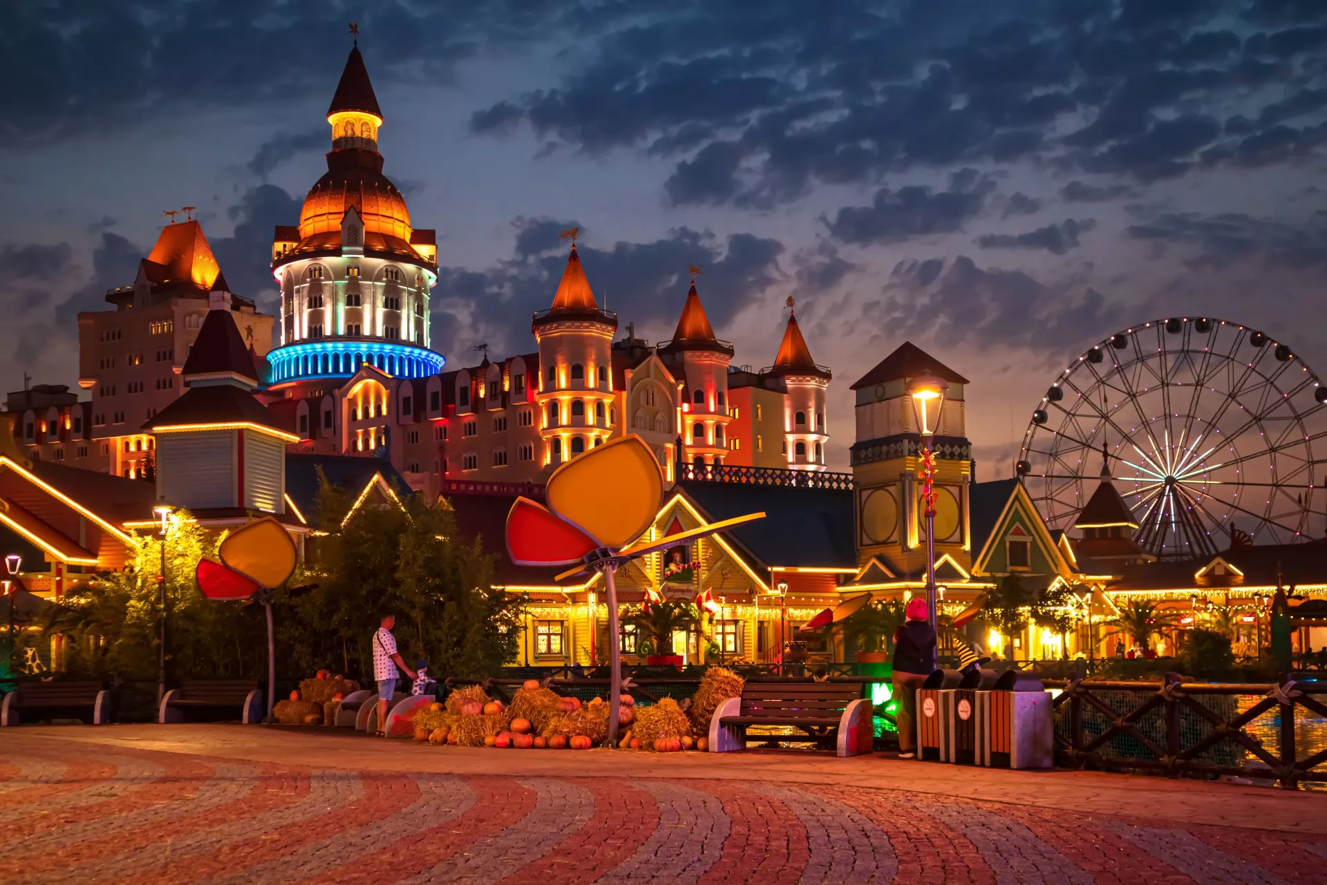 Осматривать сам парк особенно интересно вечером, когда на многих объектах зажигается красочная подсветка.